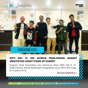 Program Studi Komunikasi dan Penyiaran Islam (KPI) UIN K. H. Abdurrahman Wahid Pekalongan mengadakan acara KPI’S DAY yang ke-12 pada (14/12), pukul 17. 00 WIB di Gedung FUAD Lantai 2 UIN Gusdur Pekalongan.…