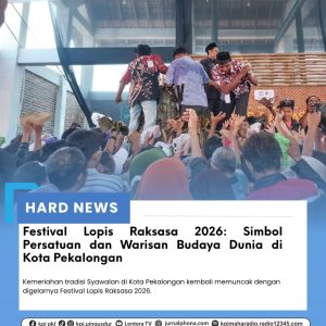 Pekalongan-jurnalphona.com Kemeriahan tradisi Syawalan di Kota Pekalongan kembali memuncak dengan digelarnya Festival Lopis Raksasa 2026.