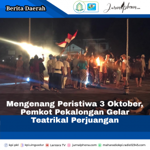 Pekalongan–Jurnalphona.com Pemerintah Kota Pekalongan kembali menggelar drama teatrikal Pertempuran 3 Oktober di Monumen Djoeang Pekalongan setelah dua tahun ditiadakan. Senin (03/10). 3 Oktober merupakan hari yang bersejarah bagi Pekalongan. Di tanggal inilah momentum…